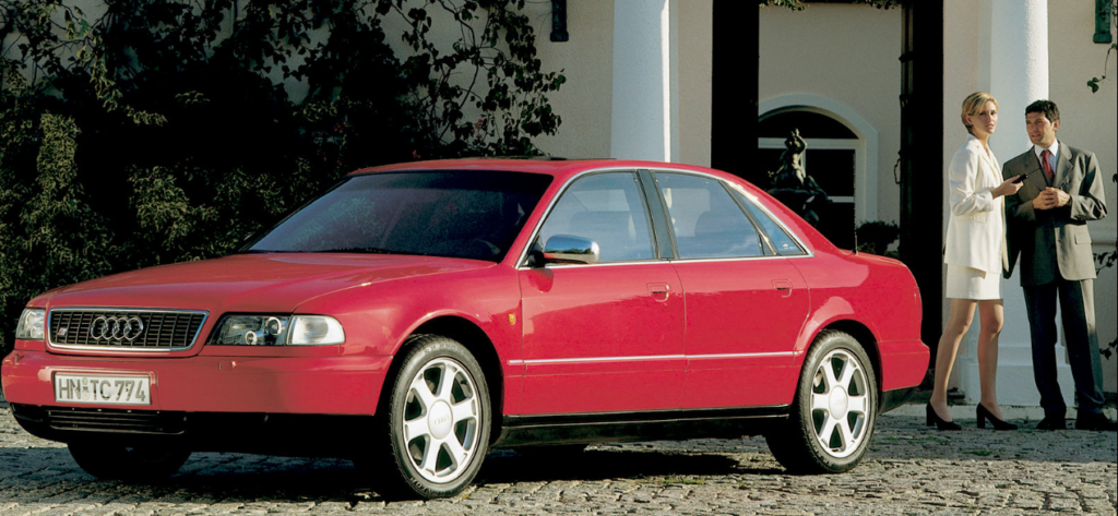 Der erste A8 war eine Sensation: Als erstes Großserienauto der Welt nutzte er eine Vollaluminium-Karosserie — den Audi Space Frame (ASF). Dadurch wog er trotz seiner Größe nur 1.590 kg — rund 250 kg weniger als die Stahl-Konkurrenz. Darüber hinaus bot er als erster Audi einen W12-Motor mit 420 PS. Die Botschaft war klar: Audi ist nicht mehr nur Mittelklasse.