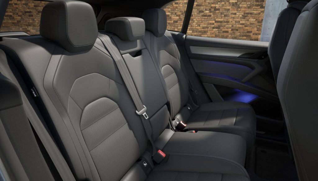 Der Kofferraum fasst bis zu 1.588 Liter (bei umgeklappten Rücksitzen), und zusätzlich gibt es einen 90-Liter-Frunk. Die Rücksitze lassen sich dabei elektrisch verstellen und umlegen. Für Familien besonders wichtig: Der Cayenne Electric zieht bis zu 3.500 kg (gebremst) beim Turbo beziehungsweise 3.000 kg beim Basismodell. Damit ist so gut wie jeder Wohnwagen, Pferdeanhänger oder Bootstrailer in Deutschland kein Problem.