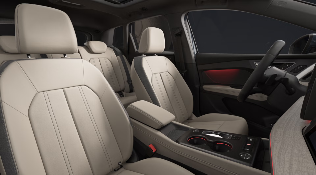 Das Cockpit orientiert sich jetzt stärker am größeren Q6 e-tron. Optional gibt es ein 12-Zoll-Display für den Beifahrer, das eigene Inhalte wie Streaming oder Navigation anzeigt – während der Fahrer das nicht sieht. Das ist eine deutliche Aufwertung gegenüber dem alten Q4-Cockpit, wirkt aber im Vergleich zu Mercedes MBUX Hyperscreen oder BMW Panoramic Vision noch konservativ.