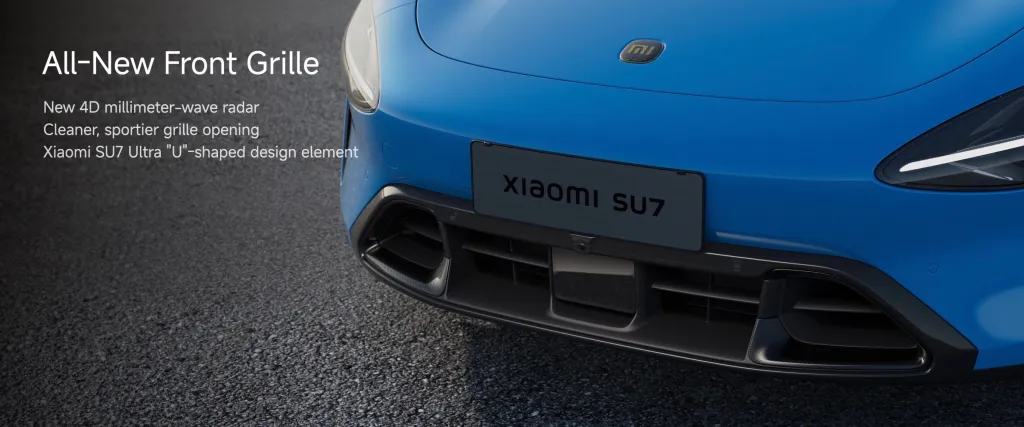 Im Innenraum gibt es serienmäßig drei Displays: ein digitales Kombiinstrument, einen großen zentralen Touchscreen und ein Head-up-Display. Die 360-Grad-Kamera liefert laut Testberichten eine der besten Auflösungen auf dem Markt — nahezu verzerrungsfrei sogar in der Draufsicht. Beim Facelift hat Xiaomi darüber hinaus einen 4D-Millimeterwellen-Radar in die Front integriert und die Frontkamera mit einer automatischen Waschdüse ausgestattet. Außerdem gibt es jetzt einen eingebauten Kühlschrank mit eigenem Kompressor in der Mittelkonsole — ein Feature, das in China als Statussymbol gilt.